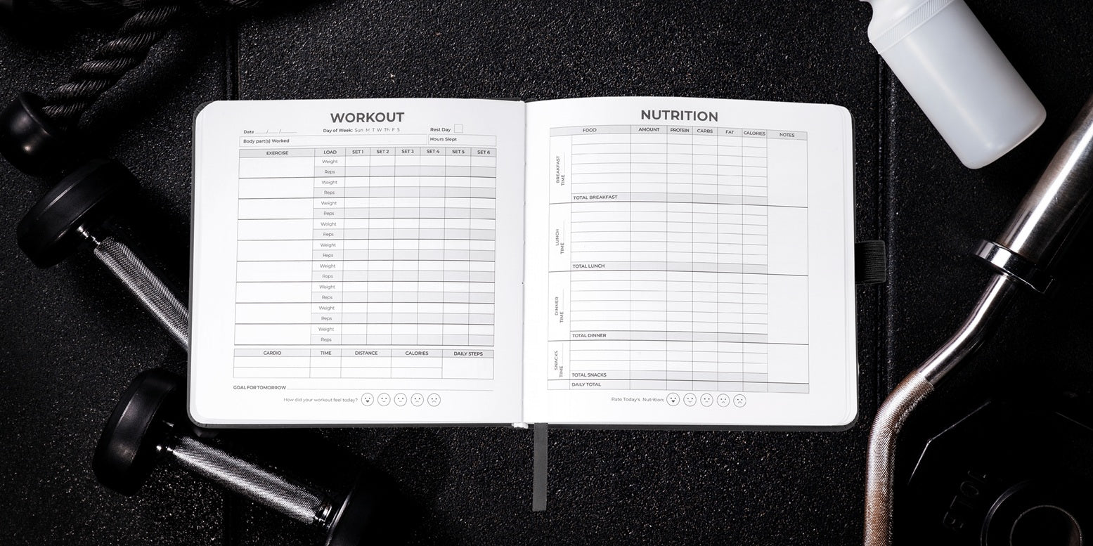 Undated format to record exercises, cardio, weight-training progress, steps, sleep, and goals, every day.